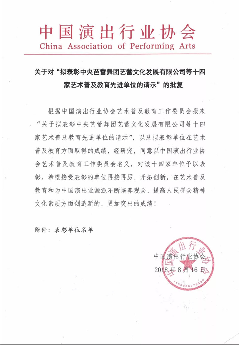 文化推广 | 中演协表彰天桥艺术中心艺术教育工作
